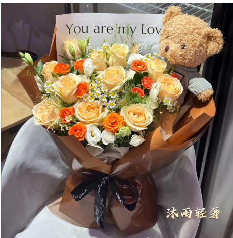 【含情脉脉】11支香槟玫瑰混搭花束复古风格送女友送朋友生日